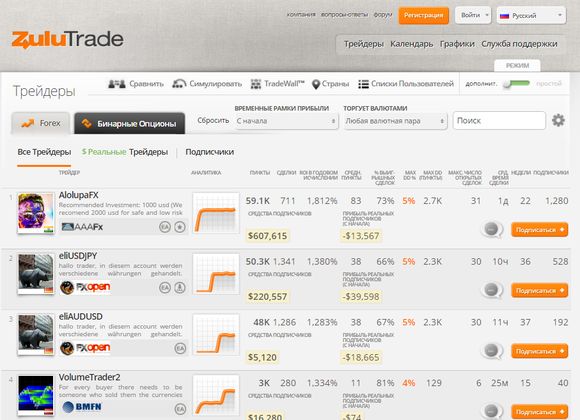 Дополнительные сервисыКопирование сделок ZuluTrade