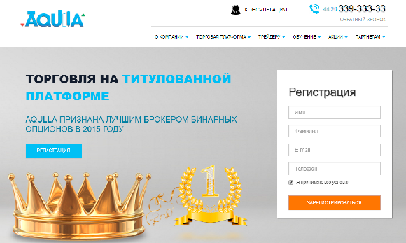 Aqulla – это молодая брокерская компания, которая предоставляет на финансовом рынке классические сервисы для торговли бинарными опционами.