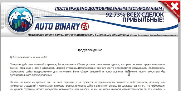 Итак, что же за робот для бинарных опционов AutoBinary EA? Для начала рассмотрим информацию, полученную из официального (и единственного) рекламного источника, представляющего собой классический красочный сайт «одностраничник».