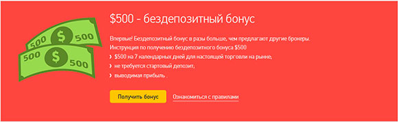 - Grand Capital – бездепозитный бонус целых 500 американских долларов, причем, это бессрочная акция. Средства начисляются единоразово и могут использоваться для торговых операций в течение 7 дней, после чего они обнуляются (соответственно, открытые на этот момент позиции автоматически закрываются). Для его получения нужно пройти верификацию (паспорт-адрес-телефон), кроме того, настоятельно рекомендуется изучить условия использования этой надбавки.