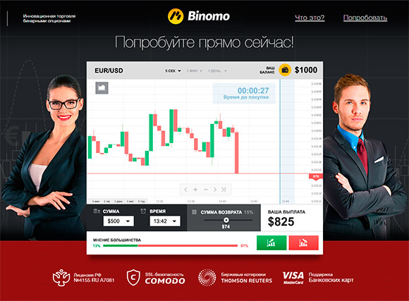 Чтобы торговать краткосрочными контрактами, вам понадобится брокерская компания, которая позволит делать это прибыльно. Более того, такой брокер должен обеспечить мгновенным заключением сделок, а любое проскальзывание котировок у него должно быть вообще исключено. Увы, таким преимуществом обладает далеко не все. Но мы решили выделить одного из немногих, брокера Binomo, на торговой платформе которого, в довесок к описанному преимуществу, минимальный лот составляет $1, что является очень выгодным условием для новичков.