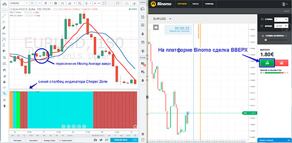 - Увидев данные сигналы, торгуйте сделкой ВВЕРХ
