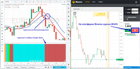 - Увидев данные сигналы, торгуйте сделкой ВНИЗ