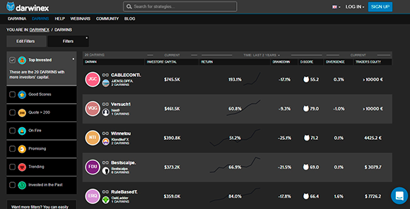 Сразу отметим, что компания осуществляет оценку счетов по собственной профессиональной системе. При этом, максимальная убыточность любого Дарвина ограничивается всего 20% в месяц и инвестору предоставляется возможность самостоятельно устанавливать стоп-уровни убытков в личном кабинете. Поэтому предлагаемый брокером рейтинг построен в первую очередь по показателям эффективности, что позволяет трейдерам выбрать действительно выгодный вариант для копирования.