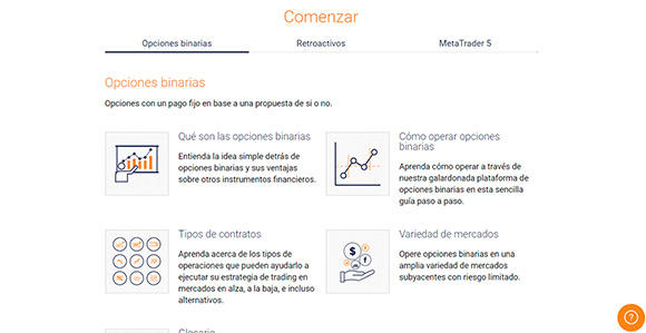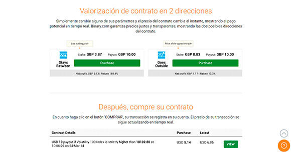 Además de esto, la página web de Binary.com es muy intuitiva y completa, contando incluso con una sección donde explican, de manera resumida y concreta, el funcionamiento del mercado y cómo se hacen las operaciones binarias, e incluso ofrece un glosario de términos para familiarizar a los nuevos usuarios.