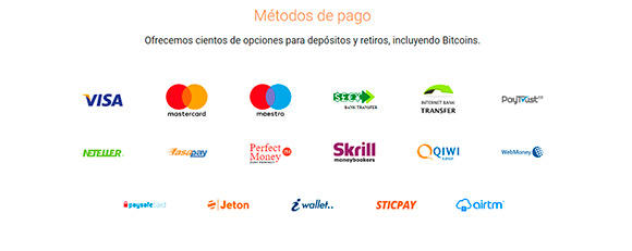 La manera de hacer los depósitos es muy variada; estos se pueden hacer mediante tarjetas de crédito, tales como VISA y MasterCard, y también pueden hacerse utilizando billeteras virtuales de preferencia de los usuarios, ya sean Neteller, Skrill o cualquier otra.