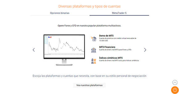 - La plataforma de MetaTrader 5, para operar en los mercados de divisas o Forex, con CFDs, metales, índices y otros activos.