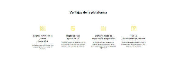 Binomo tiene una sección bastante clara para introducir a los nuevos usuarios al mundo de los negocios con divisas online, por lo que también funge como una plataforma instructora. Los beneficios de esto no solo son aprovechables por los novatos, sino que las personas experimentadas en este mundo también pueden beneficiarse al ser introducidos a nuevas herramientas para que mejoren sus estrategias de negocios.