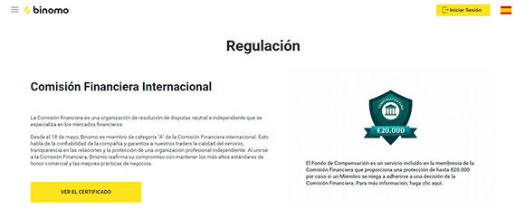 Esto también trae como beneficio contar con el Fondo de Compensación de €20.000, que no es más que un servicio que responde a favor de los usuarios en caso de que Binomo (u otro de los miembros de la Comisión Financiera) no acaten las medidas dictadas durante la resolución de una disputa.