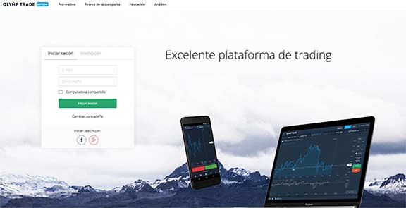 Olymptrade es una plataforma comercial muy fácil de usar. El proceso de registro toma menos de un minuto, y no es necesario descargar e instalar ningún software en el ordenador o en el smartphone. Sólo tienes que registrarte, iniciar sesión e operar.