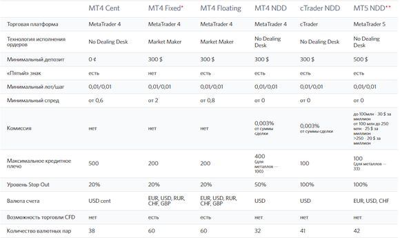 Вышеуказанные типы счетов доступны только в FG Ltd.