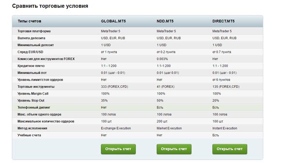 Для работы предлагает три торговых счета, отличающихся торговыми условиями: