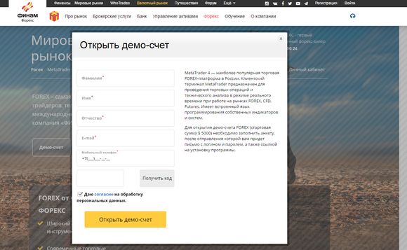 Демо-счет можно открыть только на стандартном типе депозита, но можно испробовать обе торговые платформы – и МетаТрейдер 4, и МетаТрейдер 5. Для начала работы достаточно пройти небольшую регистрацию и скачать подходящую платформу.