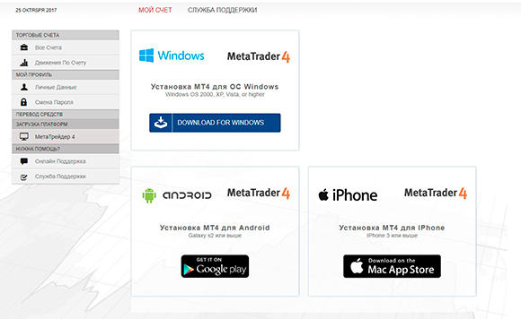Работа компании осуществляется на базе двух торговых платформ Webtrader и Metatrader4. На данных платформах трейдер получает все возможности для успешной и результативной онлайн-торговли, к тому же торговать новичкам помогают опытные аналитики, составляющие прогнозы, анализ схем и графиков, просчитывая риски и вычисляя выгодное время и способ вложений.