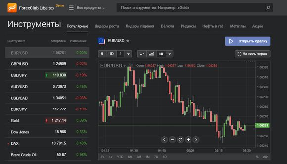 Компания Forex Club является одним из старожилов финансового рынка СНГ и сегодня пользуется популярностью благодаря своим качественным торговым и сопутствующим сервисам. При этом, как новичков, так и более опытных трейдеров в этой компании привлекают не только вполне лояльные торговые условия и наличие NDD счета, где можно торговать с гарантированным выводом позиций на межбанк, а и платформа Libertex, для использования которой предусмотрен одноименный торговый счет.