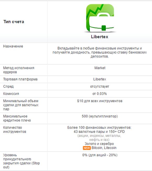 Первой особенностью данной платформы является отсутствие в ней таких понятий, как кредитное плечо, лот и спред. То есть, кредитное плечо, конечно же присутствует, однако в виде механизма мультипликатора, максимальный размер которого достигает Х500. Это позволяет, например, инвестировать 500$, которые мультипликатор Х10 превращает в 5000$. При этом, максимальная сумма потери может составить только сумму инвестиции - 500$. То есть, в отличии от традиционной торговли, где вы рискуете всей суммой торгового счета, на платформе Либертекс объем потенциального риска ограничен только объемом самой инвестиции. Можно также применять мультипликатор меньше чем X1 на определенных торговых инструментах, для ограничения убытков и диверсификации рисков по определенным портфелям.