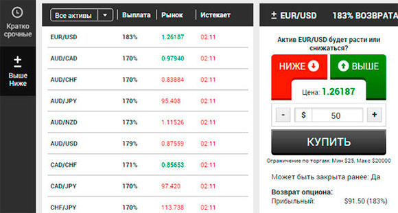 Стоимость одного опциона начинается от 1000 рублей, что немало для новичков.