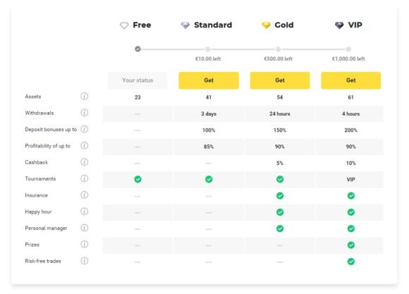 This account requires you to deposit and maintain a minimum balance of $10 in your account at all times. You get access to more than 42 different assets that you can place trade on and stand a chance to earn a profit on your investment. You get to participate in standard tournaments organized on the website.