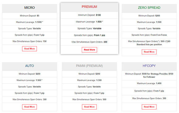 For the best customer experience, customers are given an opting to choose from 6 different types of accounts provided by this broker. Your selection is based on your preferences and requirements for a trading account. There is the option of starting with a demo account to test your trading skills then moving on to the live account.