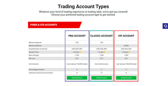 To open the pro account, you must deposit a minimum of $100 into the account using the methods approved by the broker. The currencies accepted to transact in this account apart from USD are EUR and GBP. Spreads for this type of account start from as low as 1.6 pips with minimum lots of 0.01 and maximum leverage of 1:500. There is zero commission charged on any trades made. You can use all types of trading strategies here and are allowed to use the Swap-free option to switch the account to suit Islamic Sharia Laws.