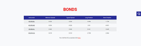 Bond markets are bigger as compared to the stock market and the transaction doesn't involve actual buying of the bond. You role is to speculate on the value of the bond depending on appreciation or depreciation. On this platform, you have access to German bonds that have a spread that starts as low as 0.0 pips.