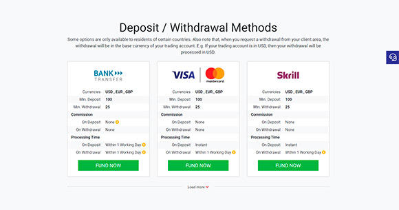 The same method you use to deposit money applies when you withdraw as well. The same currency has to be used in both currencies which means if you deposit in EUR then you use the same to withdraw. All the methods here have different limits for the minimum amount you can deposit and withdraw. These methods are the Bank Wire Transfer, Skrill, Neteller, Visa, and Mastercard.