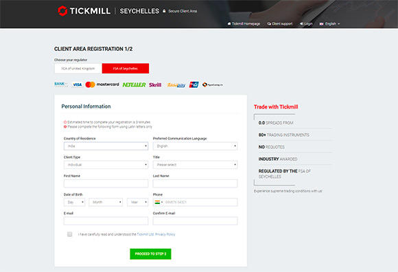 - Load a blank browsing page and input the Tickmill website www.tickmill.com
