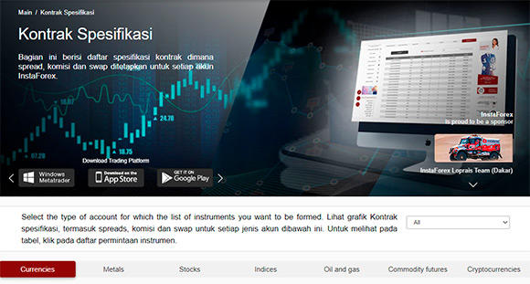 Anda dapat menikmati akses ke tiga ratus instrumen trading yang memungkinkan Anda untuk mendiversifikasi portofolio Anda dan meningkatkan peluang Anda untuk mendapatkan laba. Anda dapat memilih dari 88 pilihan CFD pasar saham Amerika Serikat. Instaforex merupakan pialang dengan jangkauan luas yang mencapai seluruh penjuru dunia dengan perwakilan yang ada di 260 kantor di seluruh dunia. Platform ini dilayani oleh sepuluh server trading yang berlokasi di Amerika Serikat, Hong Kong, Singapura, Uni Eropa, dan Britania Raya.