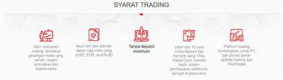 Satu-satunya hal yang perlu Anda lakukan adalah menyelesaikan trade Anda tanpa fee dan fixed spread. Anda dapat menggunakan deposit Anda pada akun ini dari manapun di seluruh dunia di mana platform ini beroperasi. Anda dapat mendepositkan uang Anda mulai dari $1 hingga $10 untuk akun Micro Forex dan $100 untuk Mini Forex. Jumlah deposit untuk forex standar adalah $1.000.