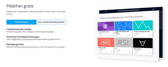 Selain itu, bagian edukasi memiliki banyak bahan untuk membimbing trader baru tentang cara sukses melakukan trading. Lebih lagi, ada ebook gratis, webinar, dan tutorial interaktif sehingga trader dapat mengakses semua informasi tentang trading yang mereka butuhkan. Informasi ini mutlak dan hanya membutuhkan waktu 1 atau 2 detik saja untuk mengunduhnya.