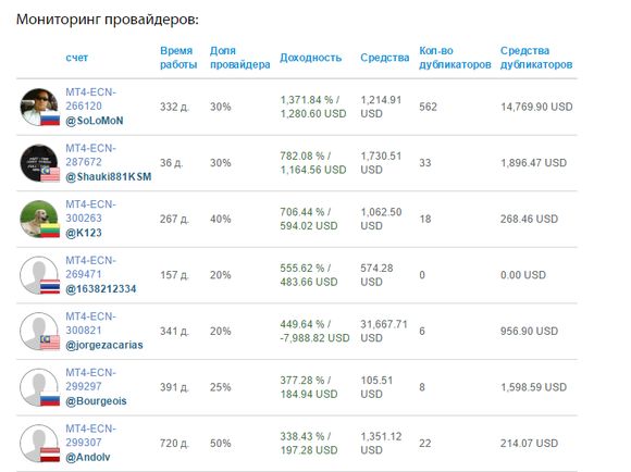 Найти провайдера торговых сигналов можно в представленном на сайте компании рейтинге, где можно выбрать подходящий вариант по нескольким параметрам: