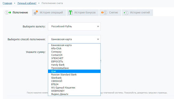 Особенности ввода и вывода средствДля ввода и вывода используется банковский перевод, а также электронные платёжные системы - ВебМани, ЯндексДеньги, Киви и другие.