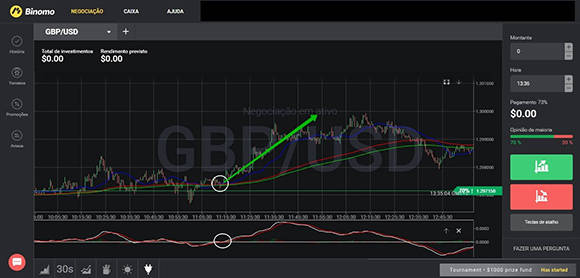 As transações de opções turbo com previsão para Subida do preço de um ativo devem ser feitas quando no mercado se formar o seguinte sistema de sinais: