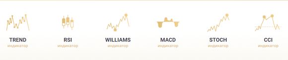 - индикаторов – брокер предлагает 6 технических средств анализа и возможность торговли одновременно с помощью нескольких индикаторов: