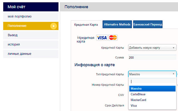 Для пополнения/вывода доступны только карта, скрилл и банковский перевод.