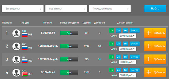 При выборе предпринимателя вы можете ориентироваться на такие параметры, как его прибыльность, процент прибыльных сделок и количество инвесторов, уже использующих его услуги. При этом второй параметр тут наиболее важный.