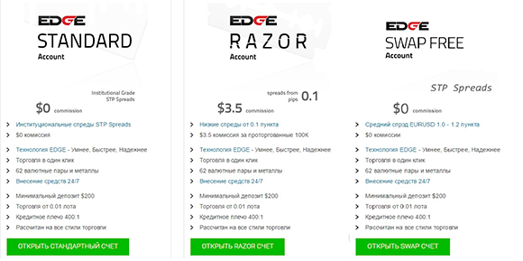 - Счет Razor предполагает ультраузкие спреды от 0,1 до 0,8 пунктов (на EURUSD) и приемлемую комиссию 3,5 USD за лот в одну сторону. Трейдинг доступен на MetaTrader 4, cTrader, Webtrader и через мобильные приложения