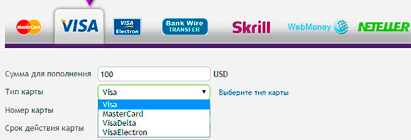 Компания не берёт комиссии и не ограничивает трейдеров в количестве выводов, совершаемых в месяц. Пополнить счёт вы сможете только в долларах или евро. Присутствует возможность пополнения через электронные системы, включая ВебМани.