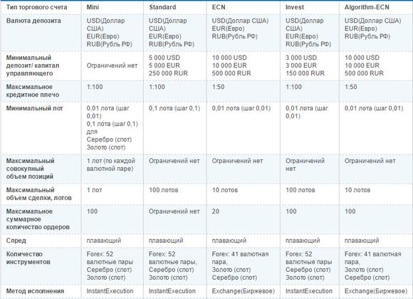 Итак, рассмотрим каждый из предлагаемых торговых счетов: