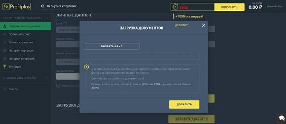 Основное условие успешного вывода денег – верификация аккаунта трейдера, без прохождения этой процедуры получить деньги нельзя. Необходимо в свой профиль загрузить скан-копию паспорта или другого документа, который удостоверяет вашу личность, и только после этого становится доступно снятие денег с баланса.
