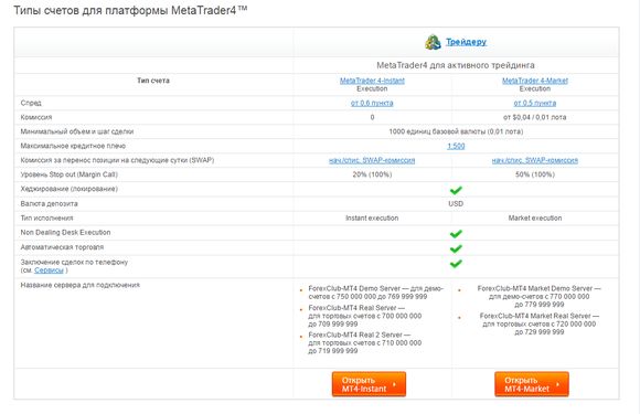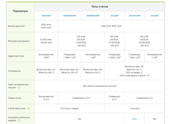 - Типы счетов: демонстрационный, стандартный счет.