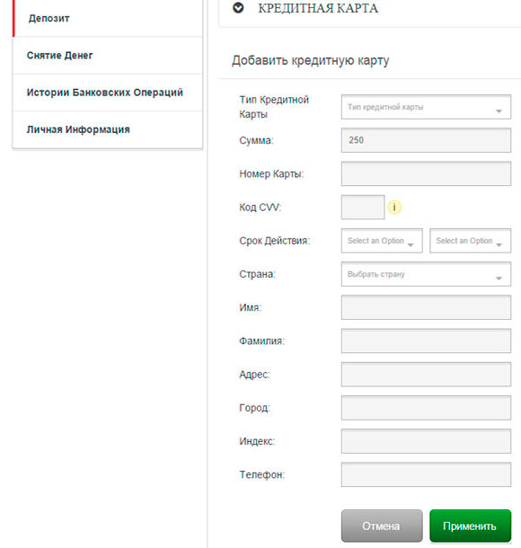 Минимальный баланс, на который вы можете пополнить депозит, составляет 250 долларов.