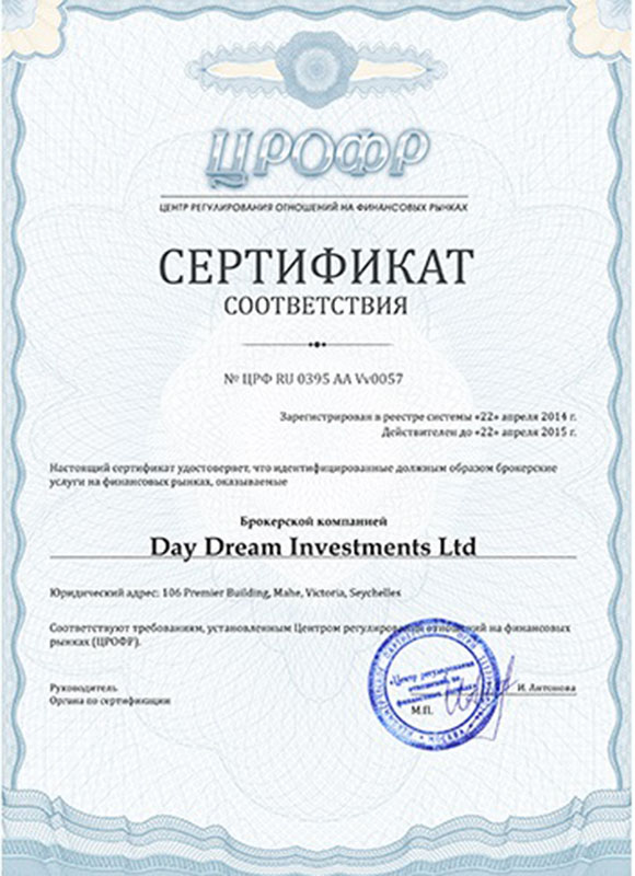 Торговая марка, как и официальный ресурс, принадлежит Day Dream Investments Ltd., офис находится в Латвии. Торговая платформа Utrader TP, предлагаемая для заключения контрактов с бинарными опционами, адаптировалась непосредственно под нужды брокера, основой программного решения послужила система SpotOption от японских разработчиков. Компания известна как надежный партнер, честно выплачивает заработанные средства, техподдержка брокера делает все возможное, чтобы клиенты были удовлетворены. Оргомное количество хороших отзывов о брокере и наличие сертификата ЦРОФР служит исчерпывающим подтверждением серьезности его намерений.