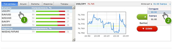 - Очередной вид – опцион «60 секунд», который повторяет условия основного типа сделки Выше/Ниже, за исключением того, что срок экспирации равняется одной минуте. Это достаточно рискованный вид сделки, однако, по уровню прибыльности намного превосходящий все прочие виды контрактов;
