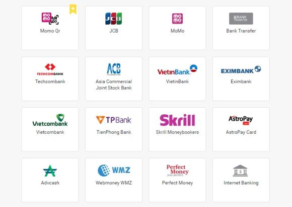 Khách hàng có thể sử dụng một số phương thức thanh toán để nạp và rút tiền tại Binomo, bao gồm thẻ ngân hàng, Webmoney và chuyển khoản ngân hàng. Khoản tiền nạp tối thiểu là 10$ nếu đó là tài khoản Standard.