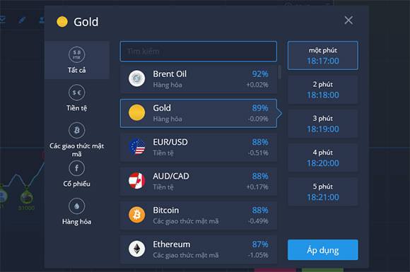 Expert Option cung cấp 50 lựa chọn khác nhau, từ các tài sản truyền thống hơn như Forex, cổ phiếu, hàng hóa, đến lĩnh vực tiền điện tử mới mẻ và thú vị.